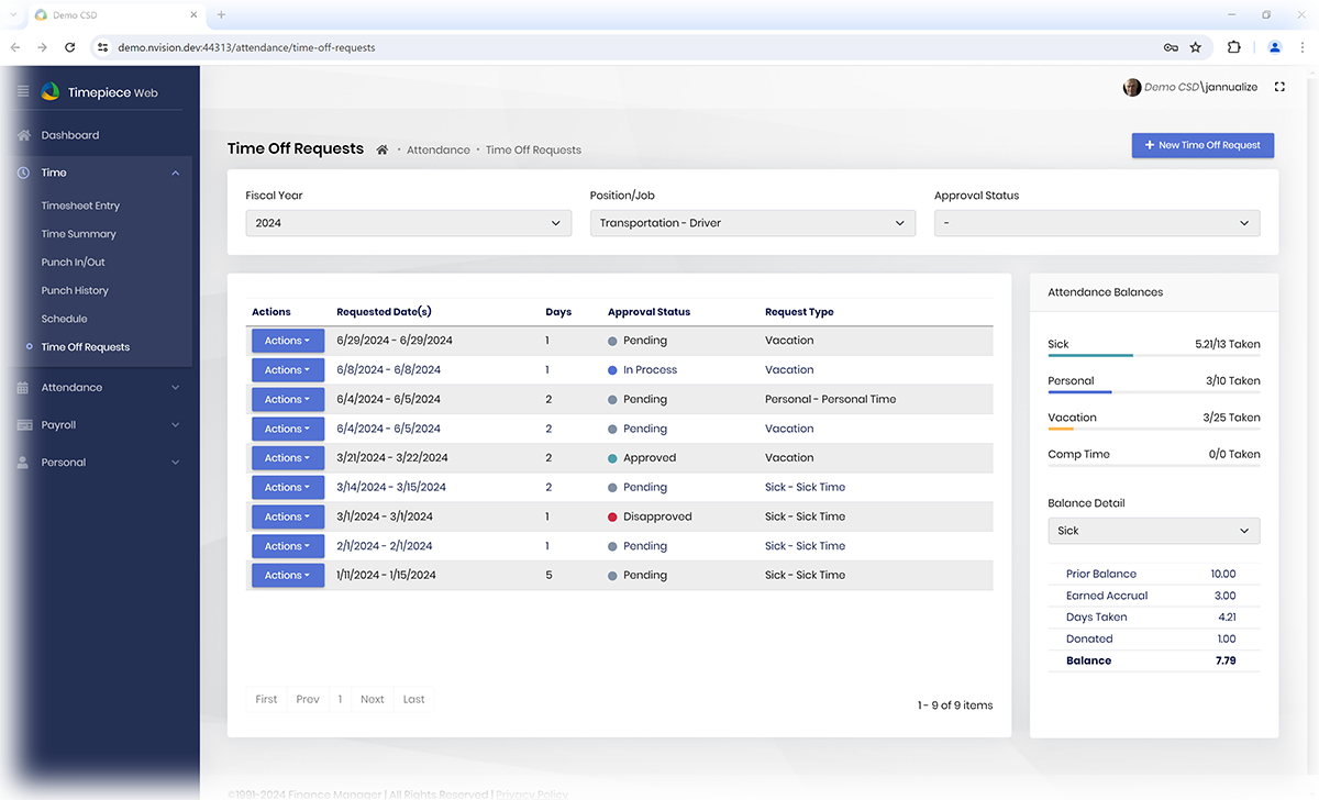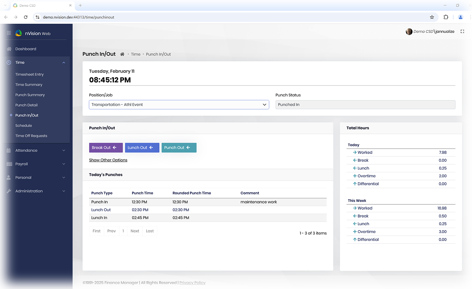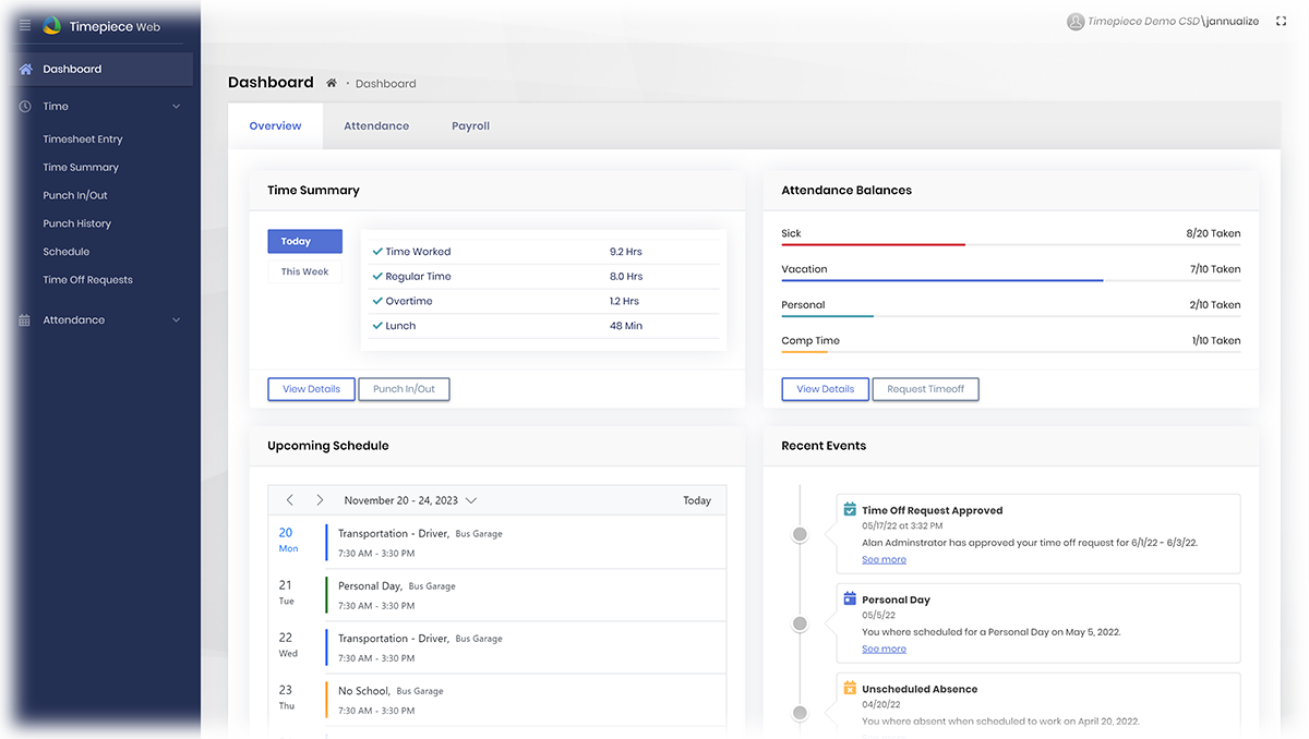 Timepiece Web has been designed to utilize the same database as the existing Timepiece software, ensuring a seamless integration between both products. The ideal complement that also fully integrates with nVision Web, Timepiece Web utilizes the same URL to access both applications. User-friendly with comprehensive access to data as well as superior security with multi-factor authentication.